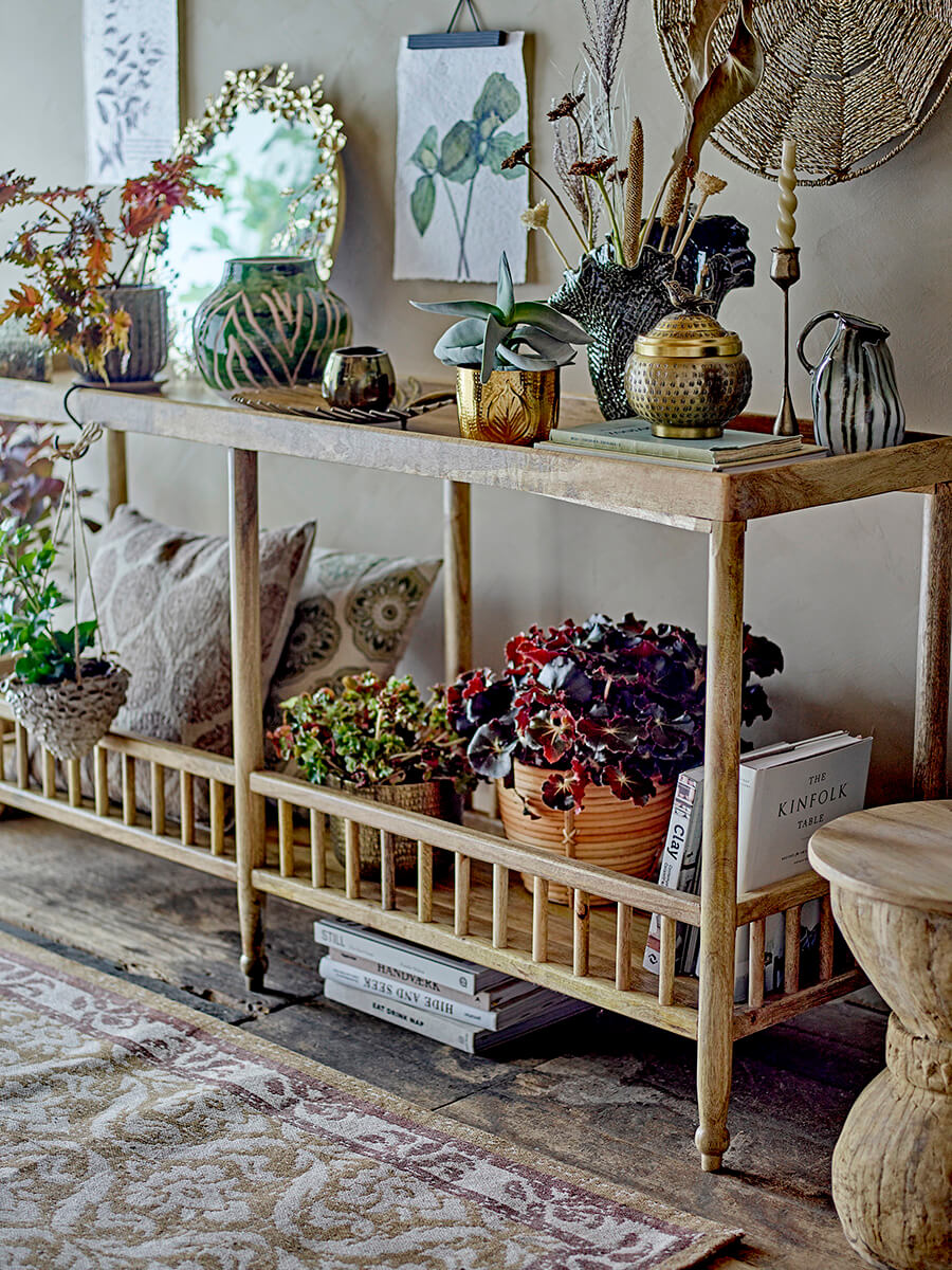 Mangófa konzolasztal gyönyörű természetes színben, hosszú pakolófelülettel. Két polcát praktikusan használhatod tárolásra és dekorálásra.