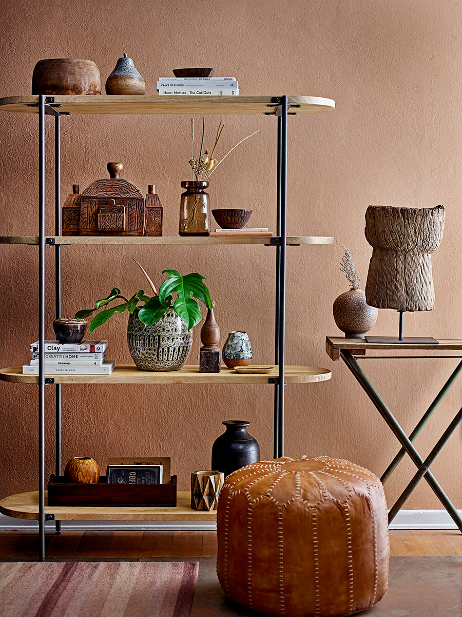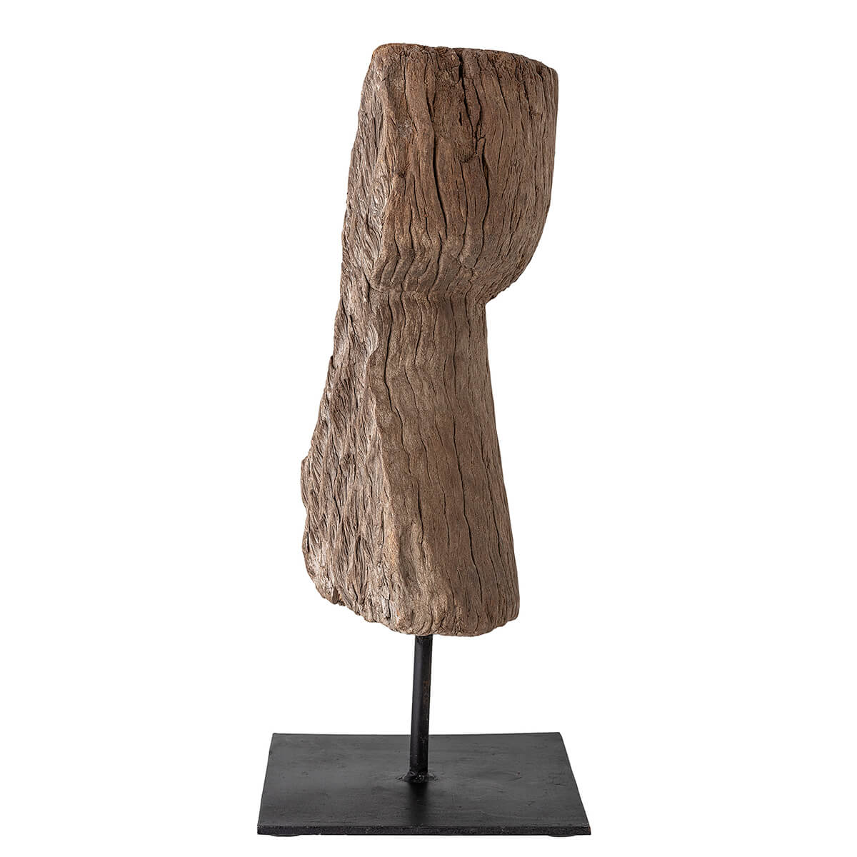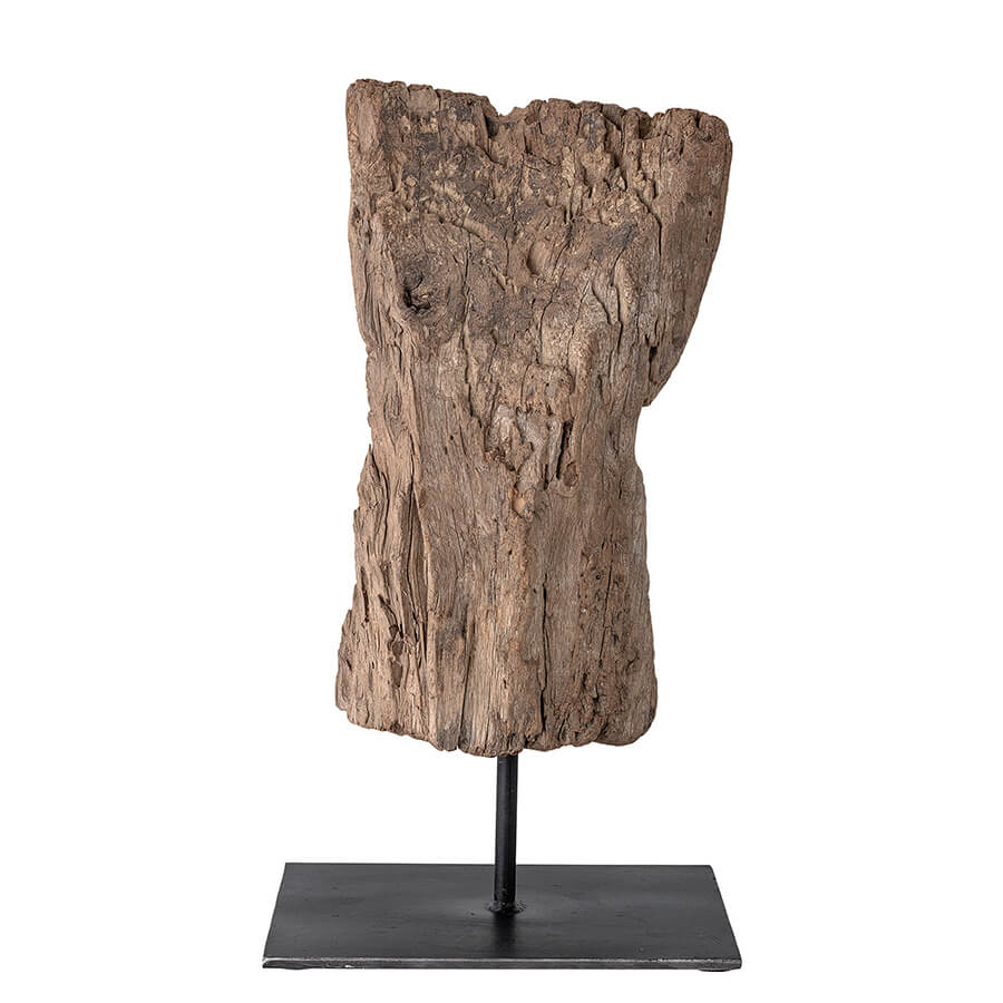 Újrahasznosított fa dekoráció, amelyet természetes wax-szal kezeltek. Az Indiából származó fa különleges formákban kézzel megmunkálva kerül a fém állványra, ezzel egyedi dekorációt hoz létre, melynek minden darabja különböző.