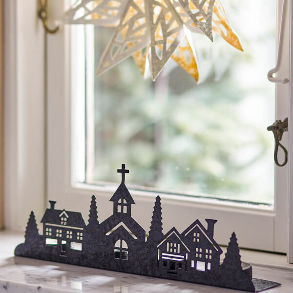 A Cielo mécsestartó a Bloomingville-től egy különleges, fekete fém dekoráció, amely az ünnepi hangulat egyik legszebb kiegészítője lehet otthonodban. A városi tájat formázó kivágott mintát, ha mécsesekkel világítod meg, meleg, meghitt fény tölti be a teret – pont úgy, mint egy téli estén a hófödte kisvárosban.