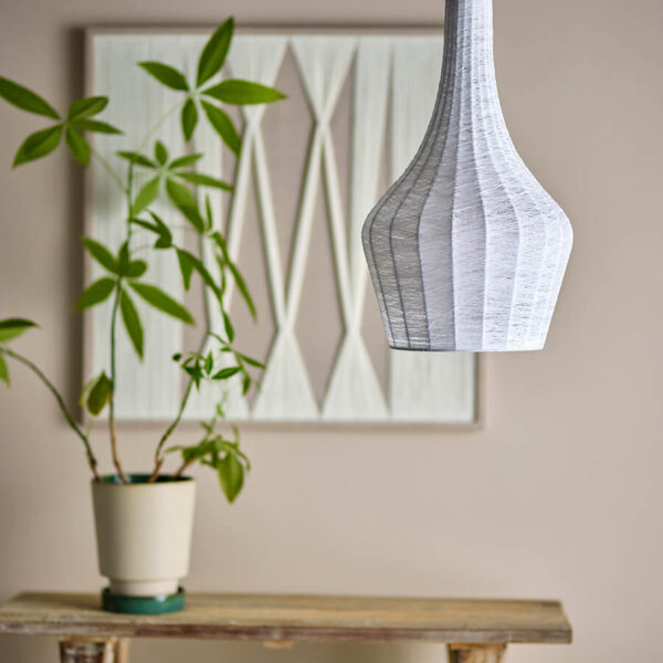 Natúr megjelenésű, papírból szőtt függőlámpa. Kellemes fényt biztosít a búra átlátszóságának köszönhetően.