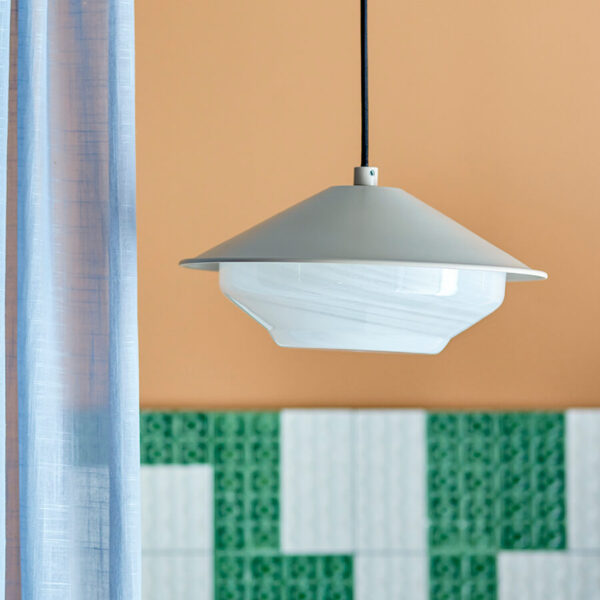 Függőlámpa letisztult, minimalista stílusban, semleges színű fém búrával.