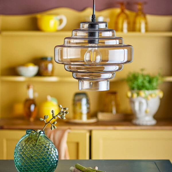 Üveg függőlámpa, amely lágy és barátságos világítást ad, és bármilyen dekorációba illeszkedik.