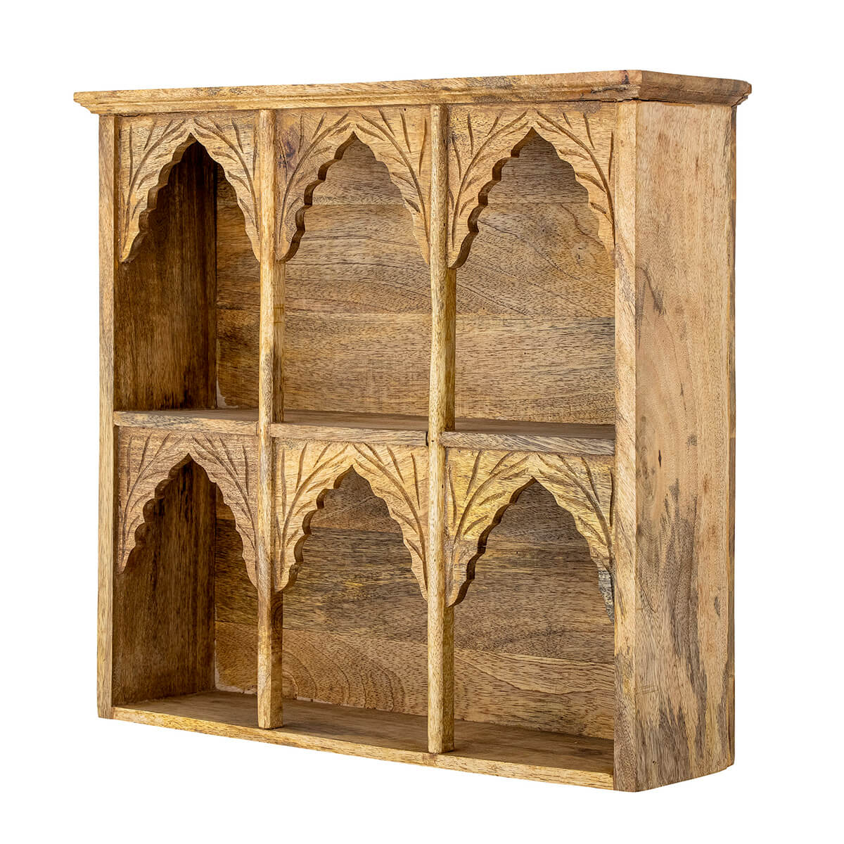 Asztali polc mangó fából kézzel faragott mintával. Használd a konyhaasztalon vagy a nappaliban egy konzolasztalon. Falra is felerősítheted, dekoráld kedvenc díszeiddel.