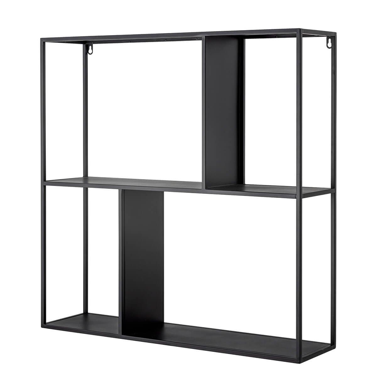 Fekete fém fali polc a Bloomingville-től, letisztult vonalaival a skandináv designt hozza el otthonodba. Nyitott polcainak és geometrikus kialakításának köszönhetően kreatívan dekorálható. Sokoldalúan használható kiegészítő, amely bármilyen stílusban jól mutat.
