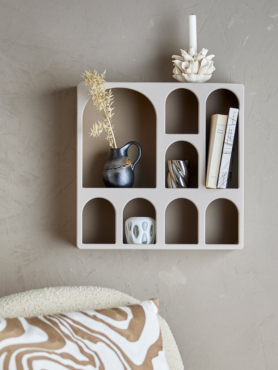 A 48x48x12 cm-es méretének köszönhetően a Graphia barna fali polc kompakt, ugyanakkor bőséges helyet biztosít könyveid, kedvenc dekorációid, kis növényeid vagy akár emléktárgyaid számára. A Bloomingville tervezői gondos figyelemmel alakították ki a polc rekeszeinek elosztását, hogy könnyedén kiemelhesd rajta bármely gyűjteményed különleges darabjait, miközben a polc mindig rendezett és letisztult marad.