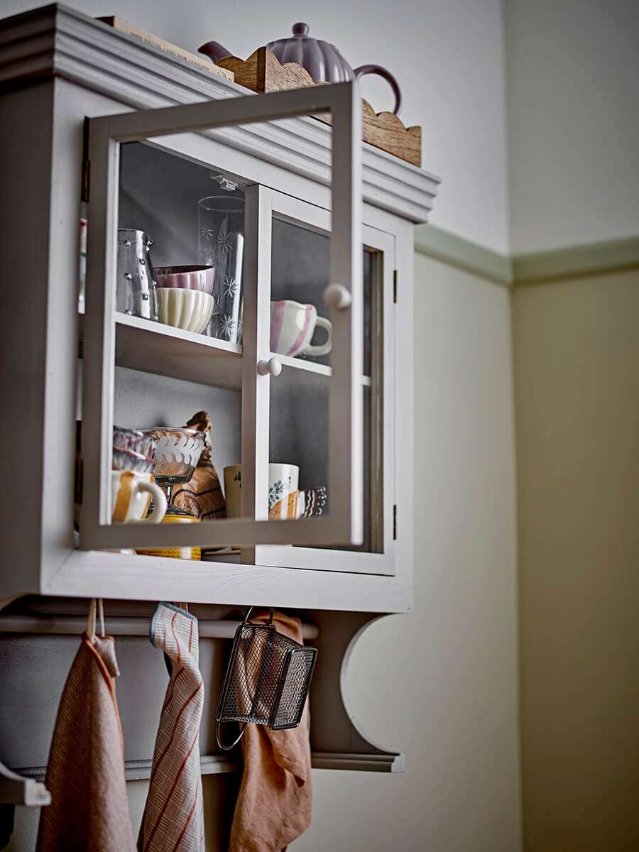 Ez a szürke fenyőből készült fali szekrény a Bloomingville kollekciójának gyöngyszeme, amely vintage hangulatot és skandináv letisztultságot hoz otthonodba. Az enyhén patinás felület és az üveg ajtók kifinomult megjelenést kölcsönöznek, miközben a praktikus kialakítás segít rendezetten tartani a mindennapi tárgyakat.