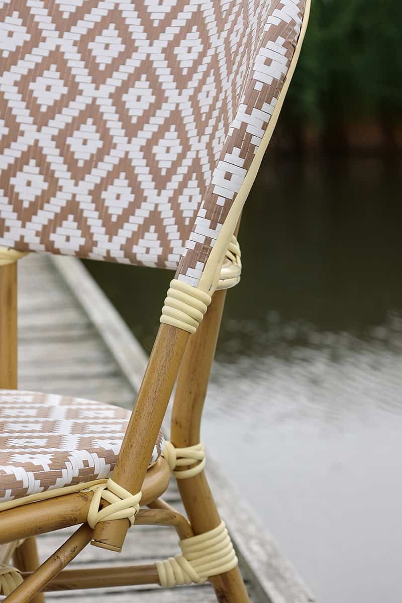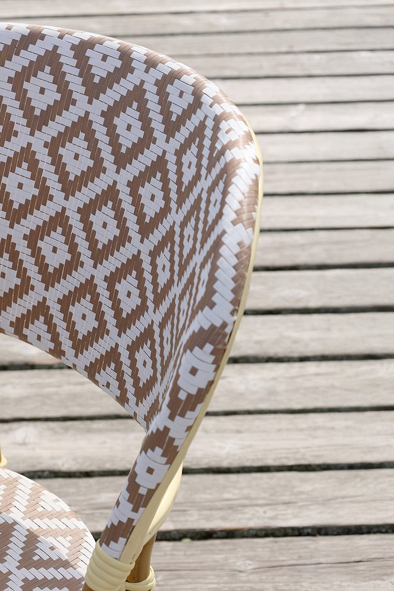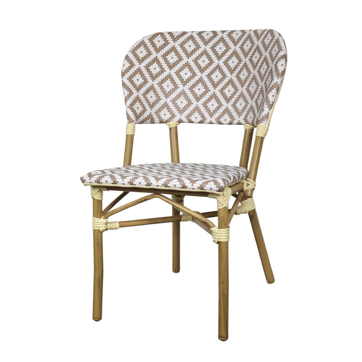 Természetes hatású, modern megjelenésű kerti szék szett, amely tökéletes választás teraszra, erkélyre vagy kerti asztal mellé. Az alumínium váz stabilitást, a mintás textil ülő- és háttámla pedig kényelmet és karaktert ad minden kültéri térnek.