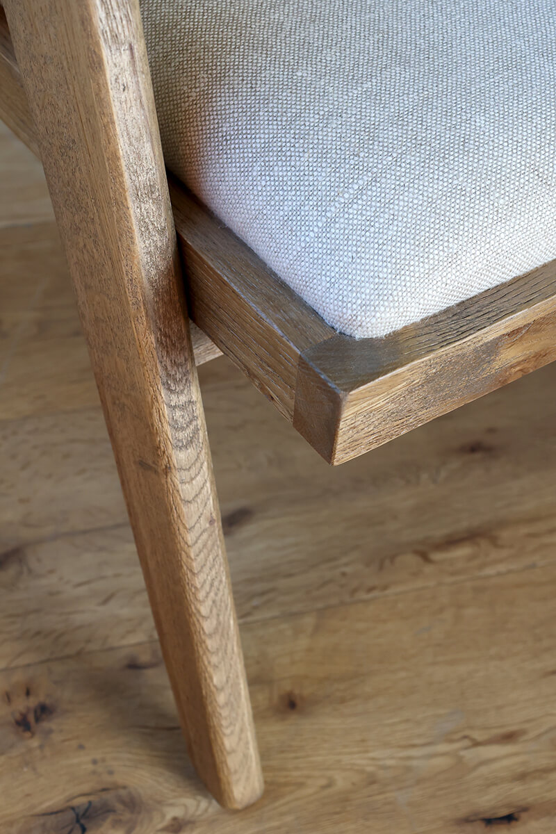 A világos vászonnal borított, kényelmes textil ülőfelület lágy kontrasztot alkot a fa melegségével, így a fotel tökéletes választás bármilyen enteriőrbe, ahol a funkcionalitás és a stílus kéz a kézben jár. Tedd még otthonosabbá párnák vagy takarók hozzáadásával!
