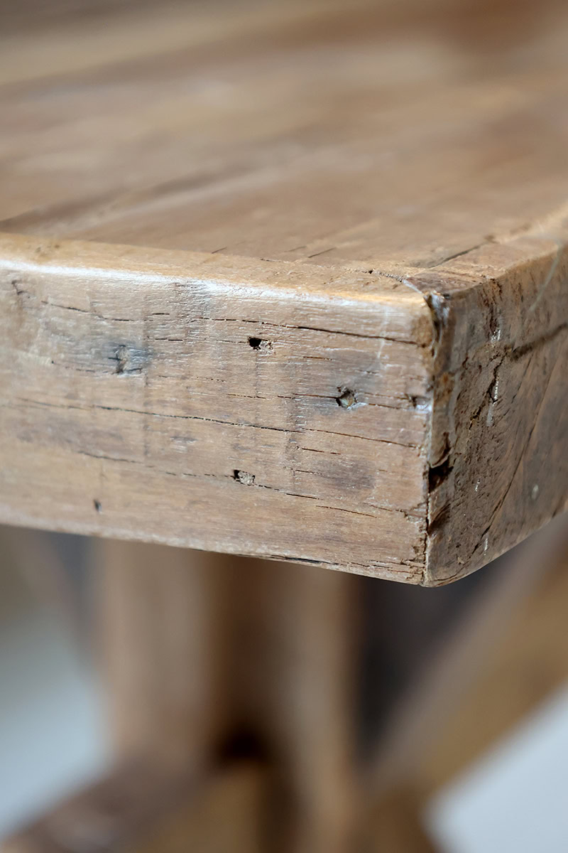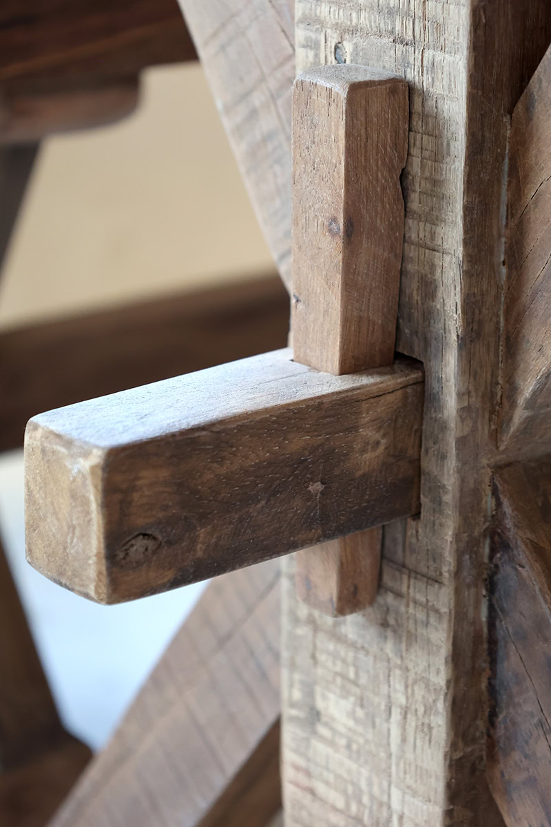 A Grimaud pad a rusztikus elegancia és a fenntartható szemlélet találkozása. Újrahasznosított fából készült, így minden darab egyedi: a fa erezete, apró repedései, színárnyalatai és patinája saját történetet hordoznak.
