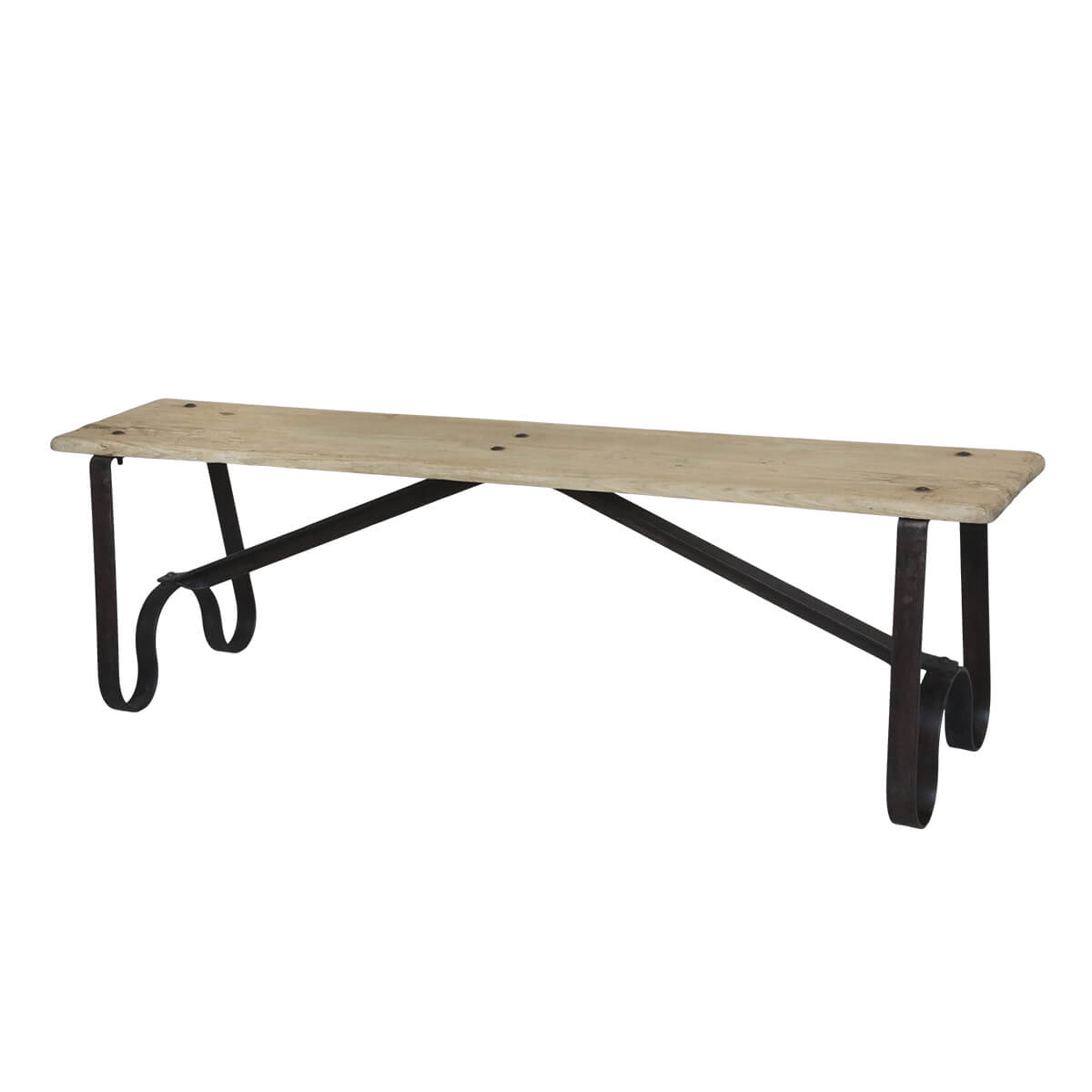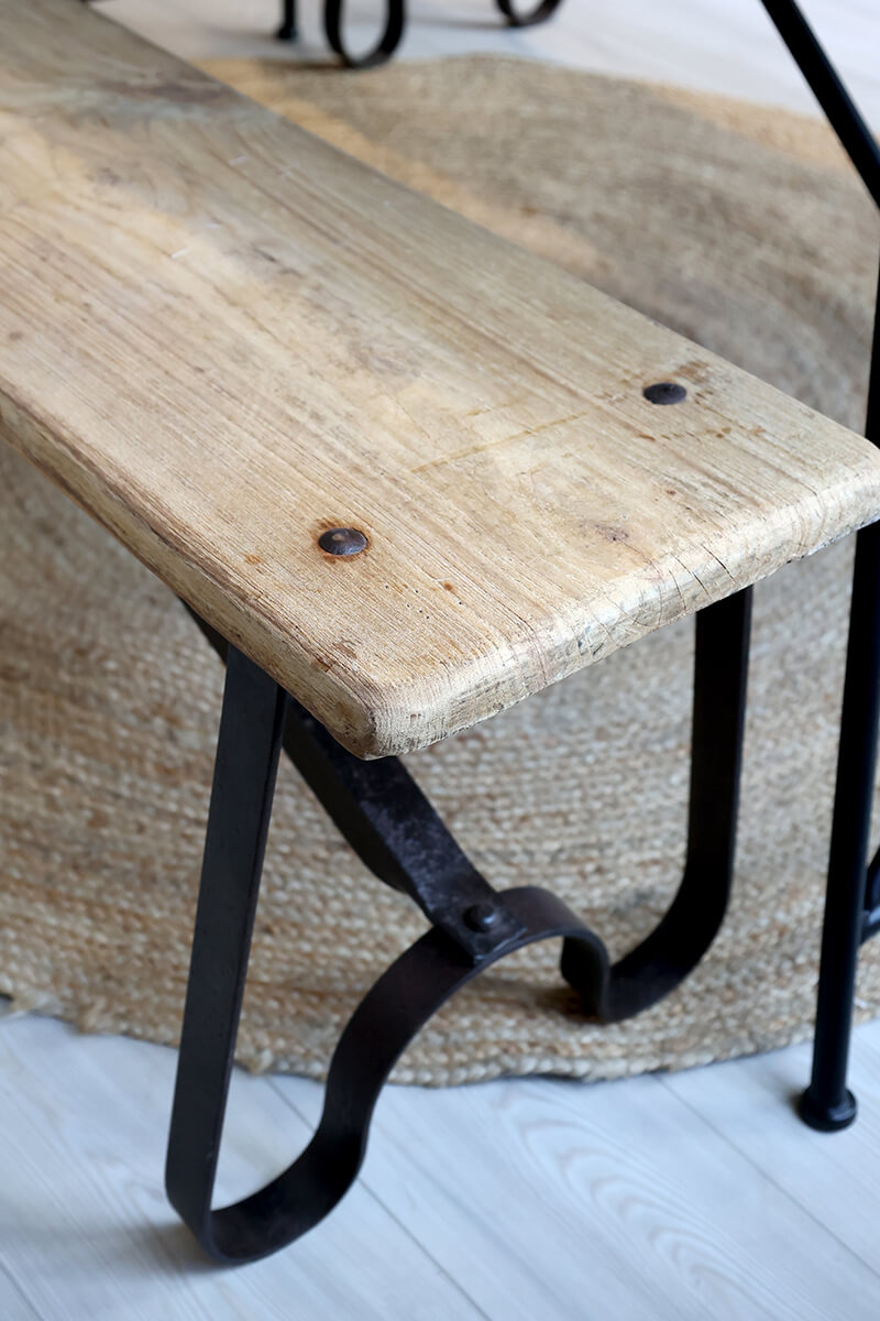 Ülőpad újrahasznosított fából, egyedi mintázattal készült fém lábakon. A Chic Antique Grimaud kollekciója új életet ad csodálatos faanyagoknak, különleges vintage kiegészítőket teremtve otthonod számára.